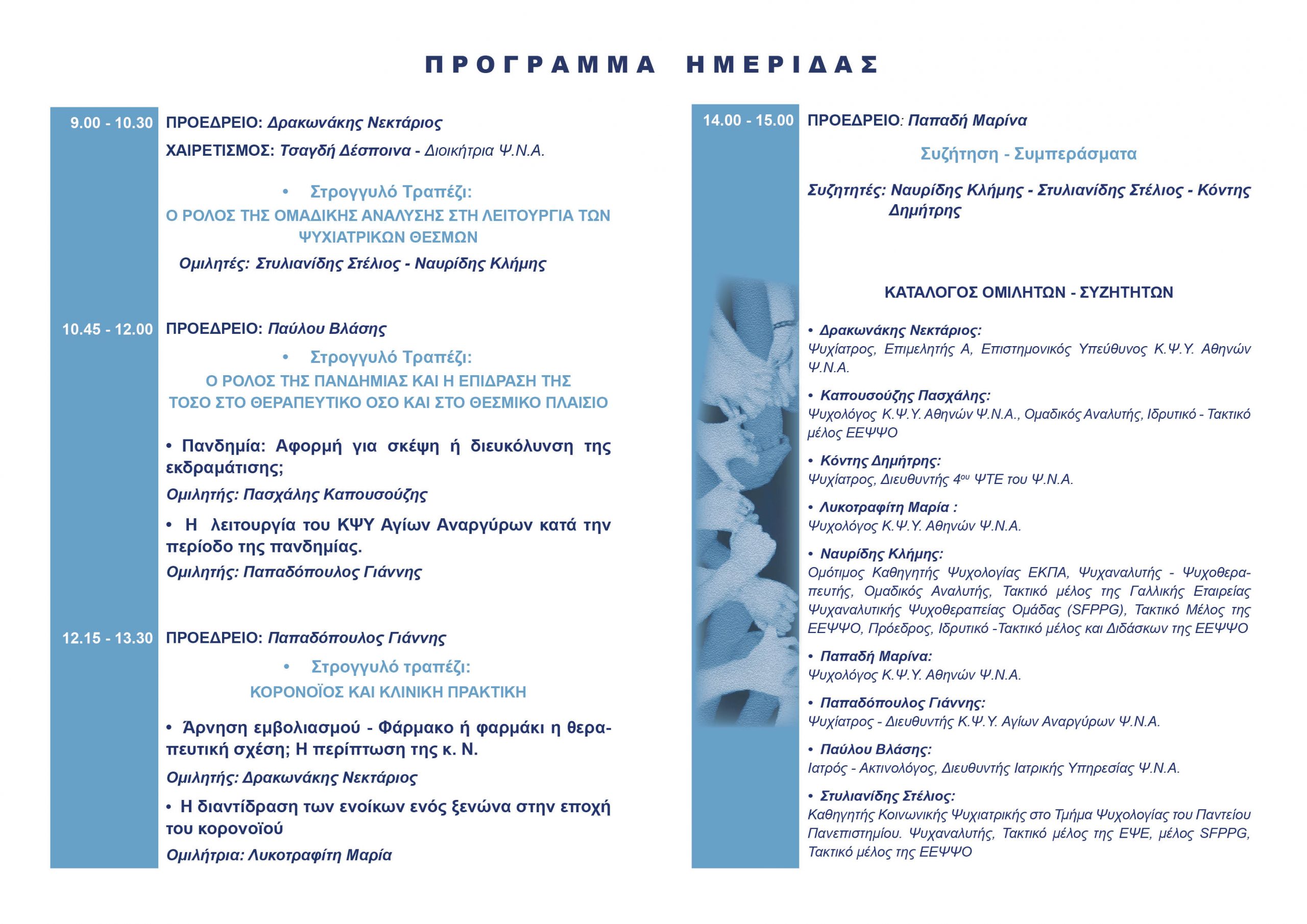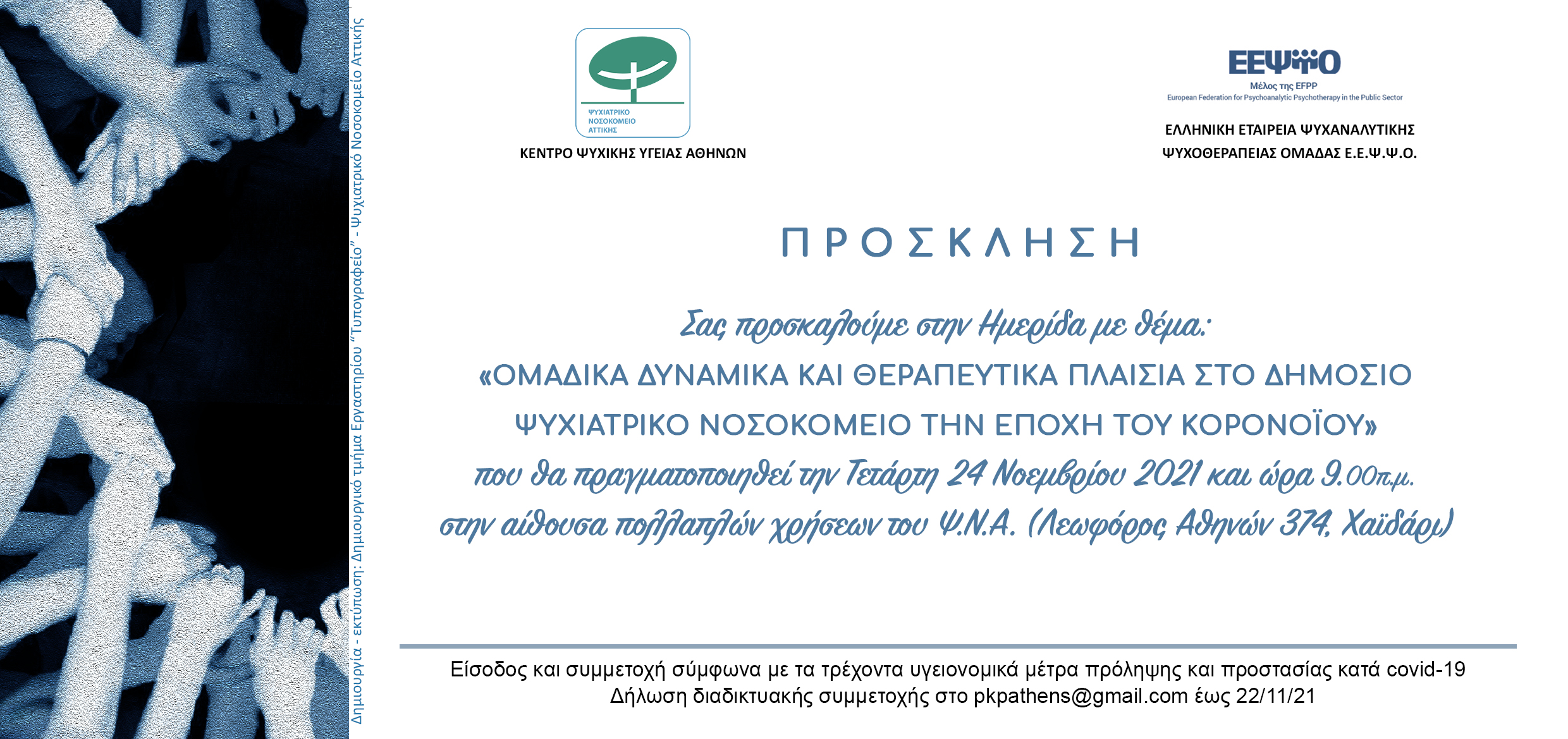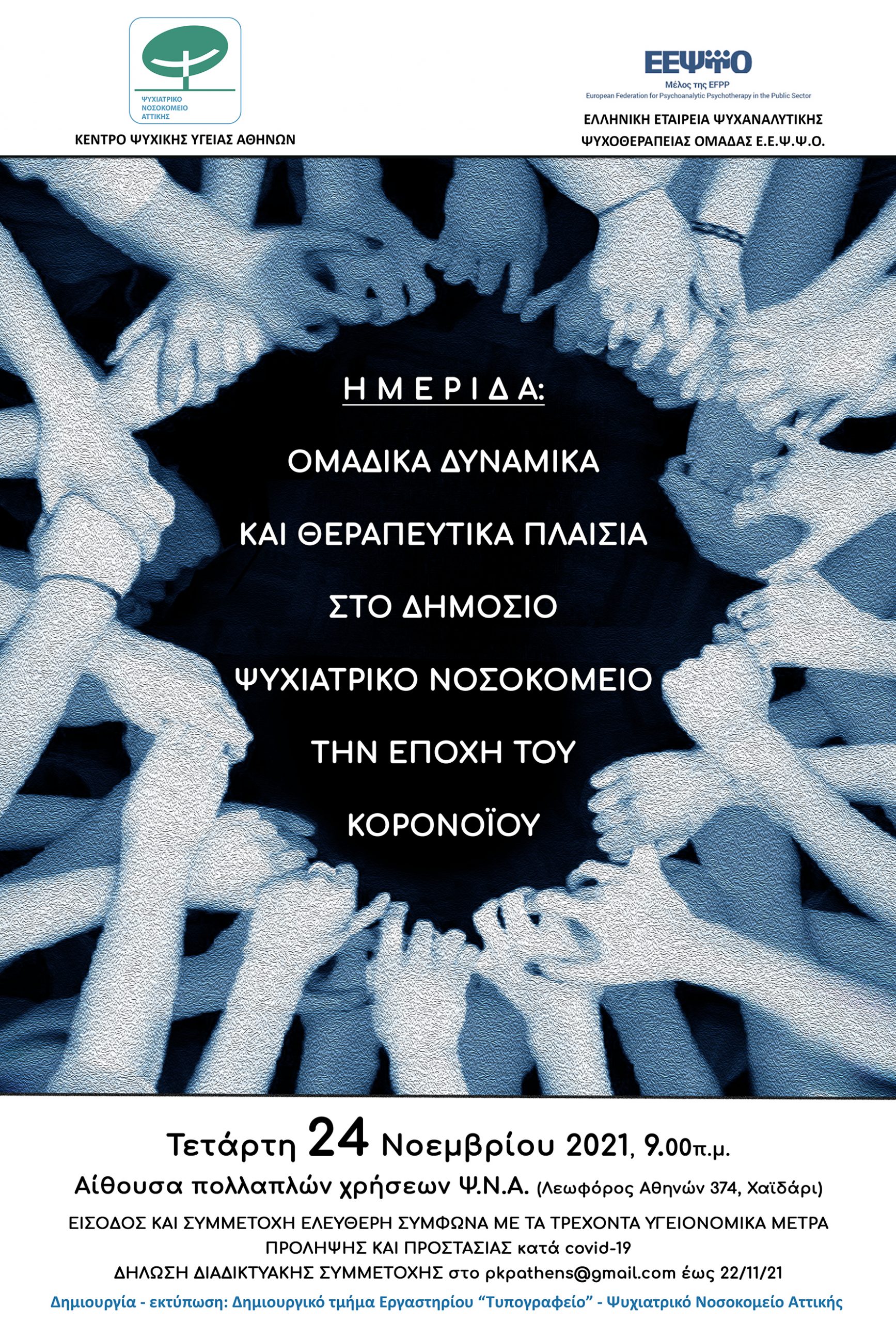 Ημερίδα: Ομαδικά δυναμικά και θεραπευτικά πλαίσια στο Ψυχιατρικό Δημόσιο Νοσοκομείο την εποχή του κορονοϊού