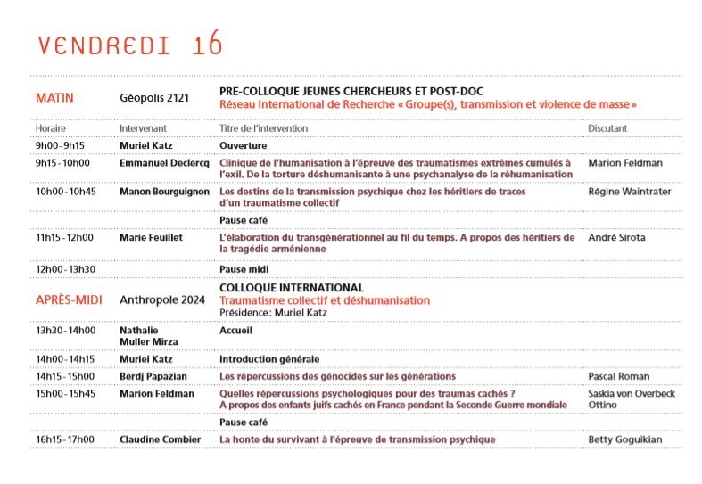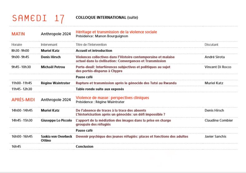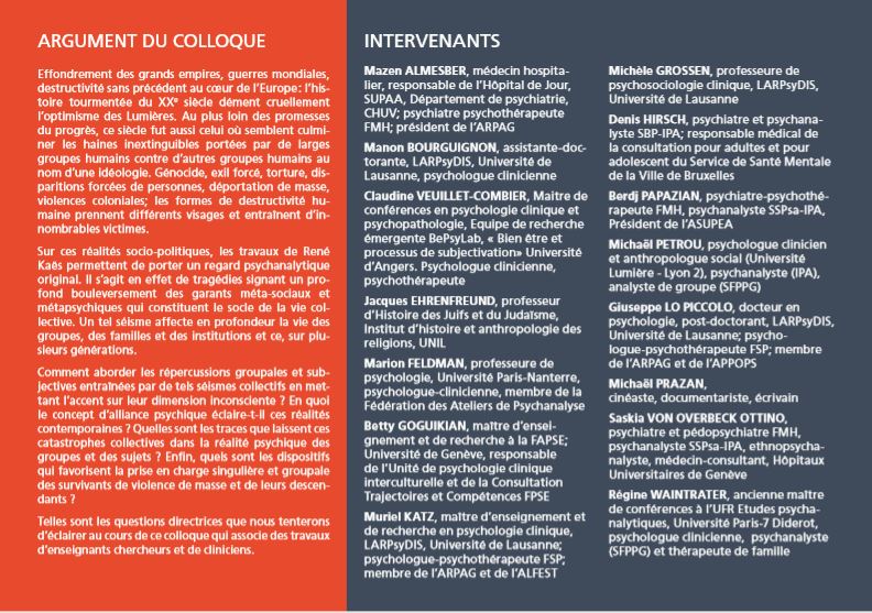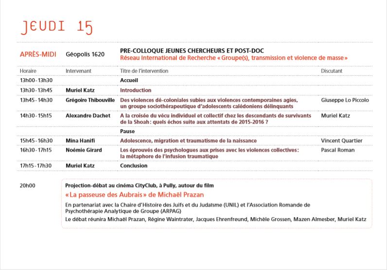 Colloque international Violence sociale, violence de masse : quelles répercussions groupales et subjectives ?