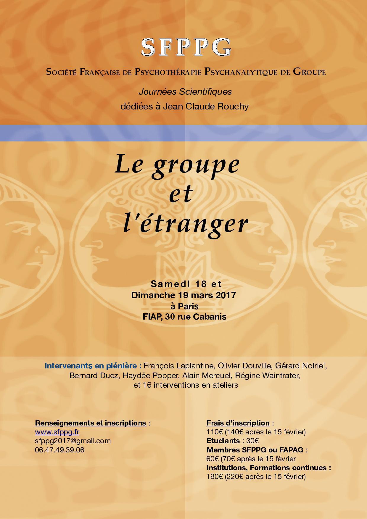 L’objet de ce colloque est de situer cette problématique au sein des pratiques groupales. Quelle est la place de l’étrange étranger dans l’économie familiale ? Quelle est la tolérance d’une institution à la présence de ce qui lui est étranger ? Comment penser les liens entre l’autre, le différent, en un mot l’étranger, et l’identité d’un groupe social ?